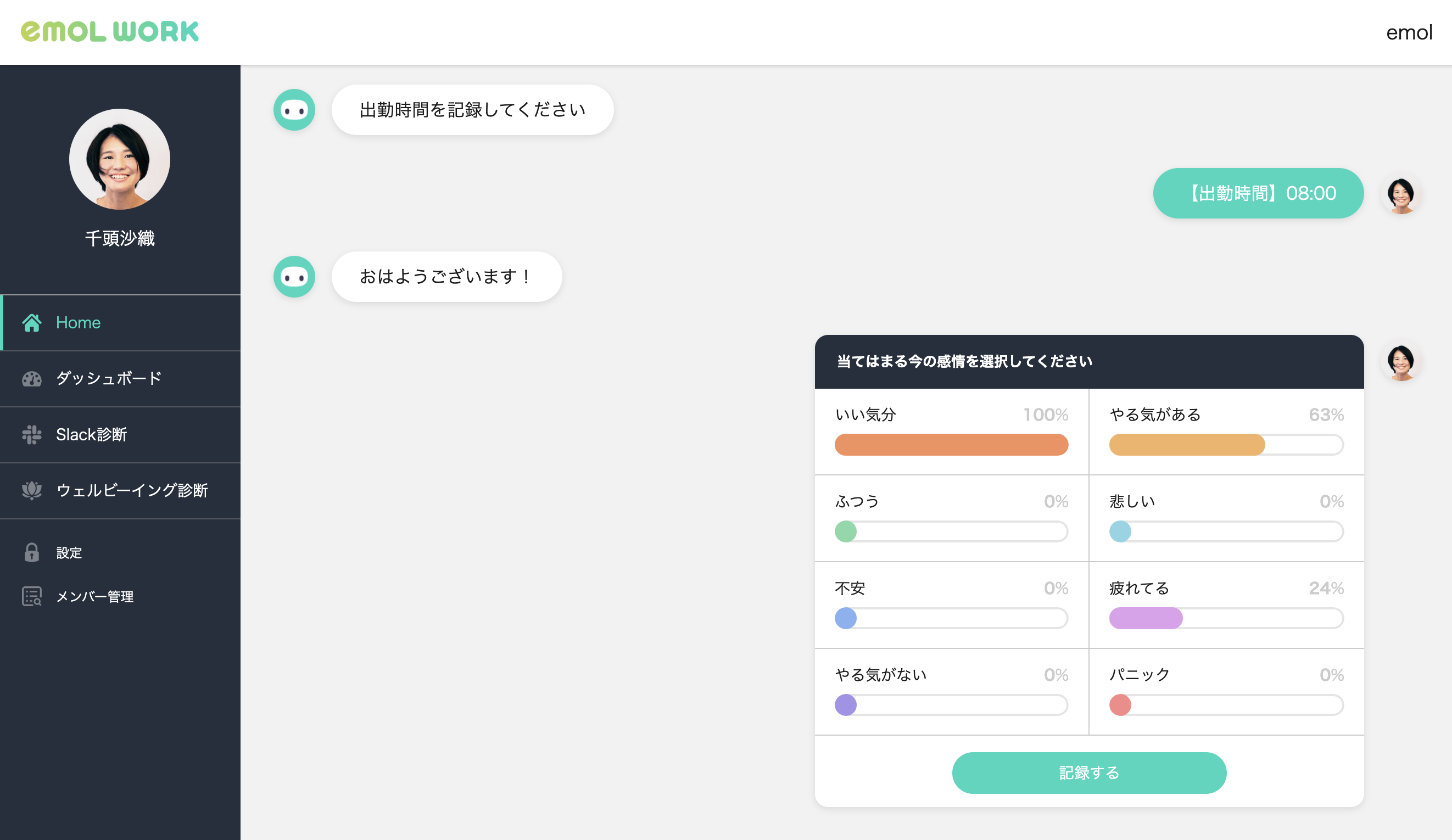 AIロボとのチャットを通じて日々の感情を記録できるアプリ「emol」を運営するemolは12月2日、従業員のメンタルケアを通じて組織の生産性向上をサポートする法人向け新プロダクト「emol work」のベータ版をリリースした。