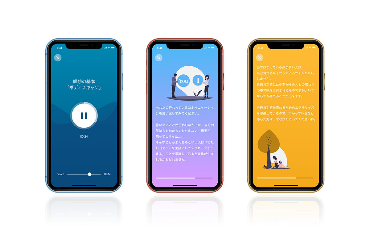 - 聴いて鍛える音声コンテンツ(瞑想・マインドフルネス、リラックス音など)