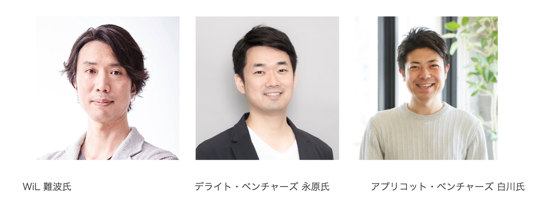 最大で6プロジェクトを受け入れる予定で、デライト・ベンチャーズでプリンシパルを務める永原健太郎氏、アプリコット・ベンチャーズでジェネラルパートナーを務める白川智樹氏、WiLでパートナーを務める難波俊充氏がメンターとしてそれぞれ最大2社ずつを支援するという。