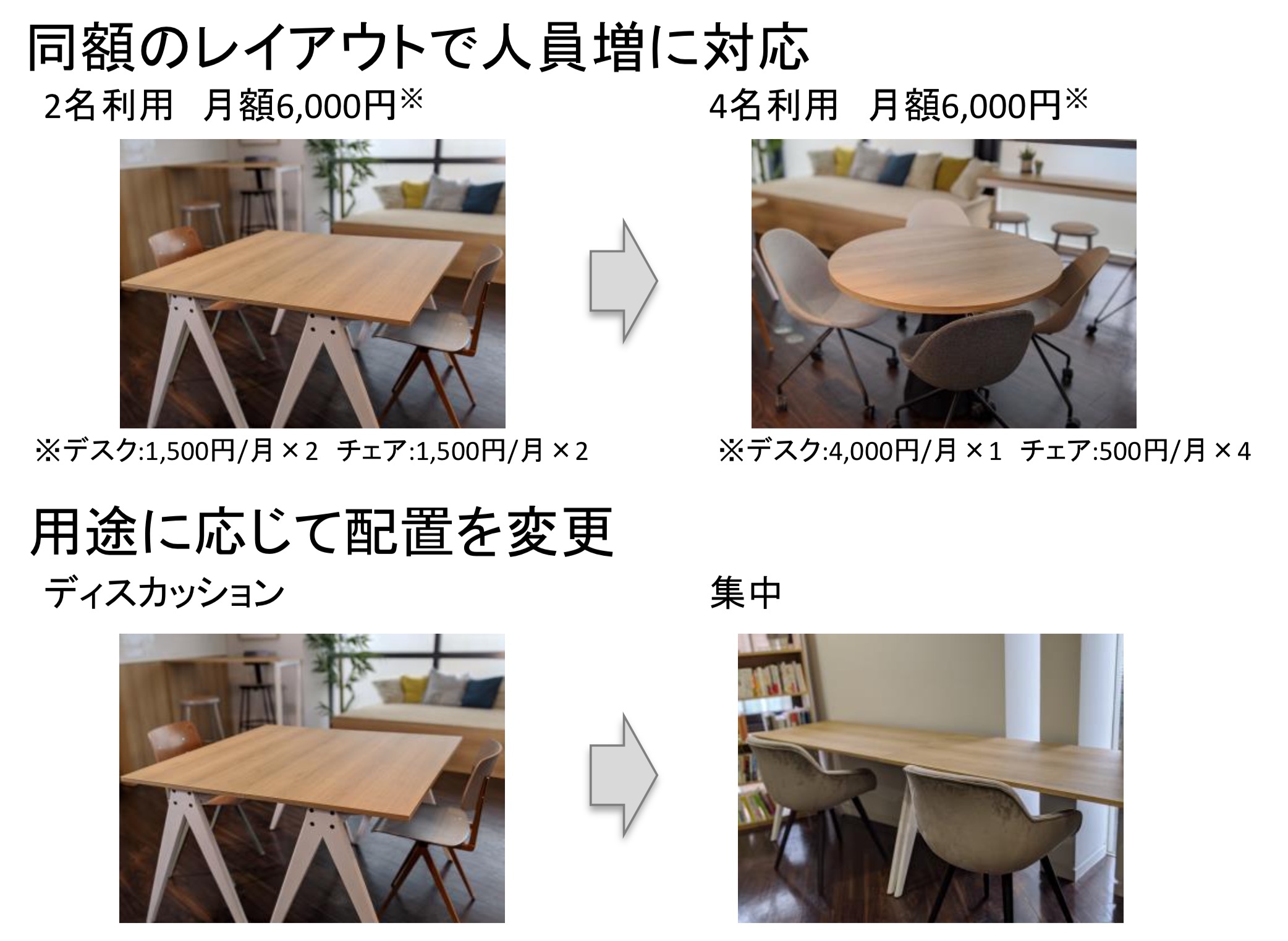 また交換し放題であるため“A/Bテスト”のような感覚で何度も家具やレイアウトを変更でき、理想のオフィスづくりに強いこだわりがある企業とも相性が良さそうだ。