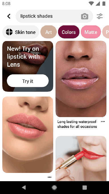 Pinterestは、将来的にはリップ以外の製品やカテゴリーも試せるようにすると述べている。