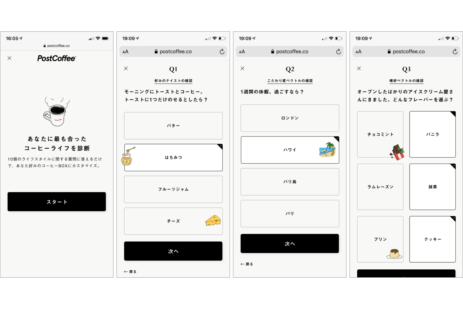 PostCoffeeでコーヒーを頼みたいユーザーは、まずオンライン上で「コーヒー診断」を行う。