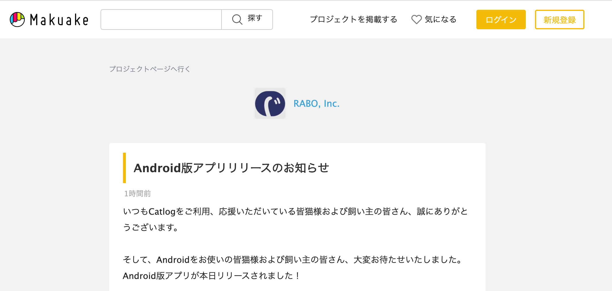 RABOは2月14日、同社が開発・販売してる首輪型の猫用バイオロギングデバイス「Catlog」のAndroid版をリリースした。1月27日に公表したリリーススケジュールどおりとなった。