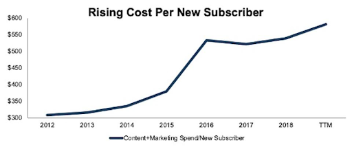 売上を上げるためにNetflixは値段を上げなければいけなかった。しかも、ユーザー獲得コストもどんどん上がっている。