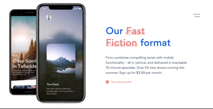 しかも今回の$400M資金調達では前回参加した投資家のViacomやNBCUniversalが参加してない。これはあまり良い印象にはならない。1年で750万人のサブスク登録を目指しているとのこと。そのうち200万人はほぼ確定:アメリカ電話キャリア会社T-Mobileと提携して、彼らのユーザーは1年間無料でQuibiを使える。