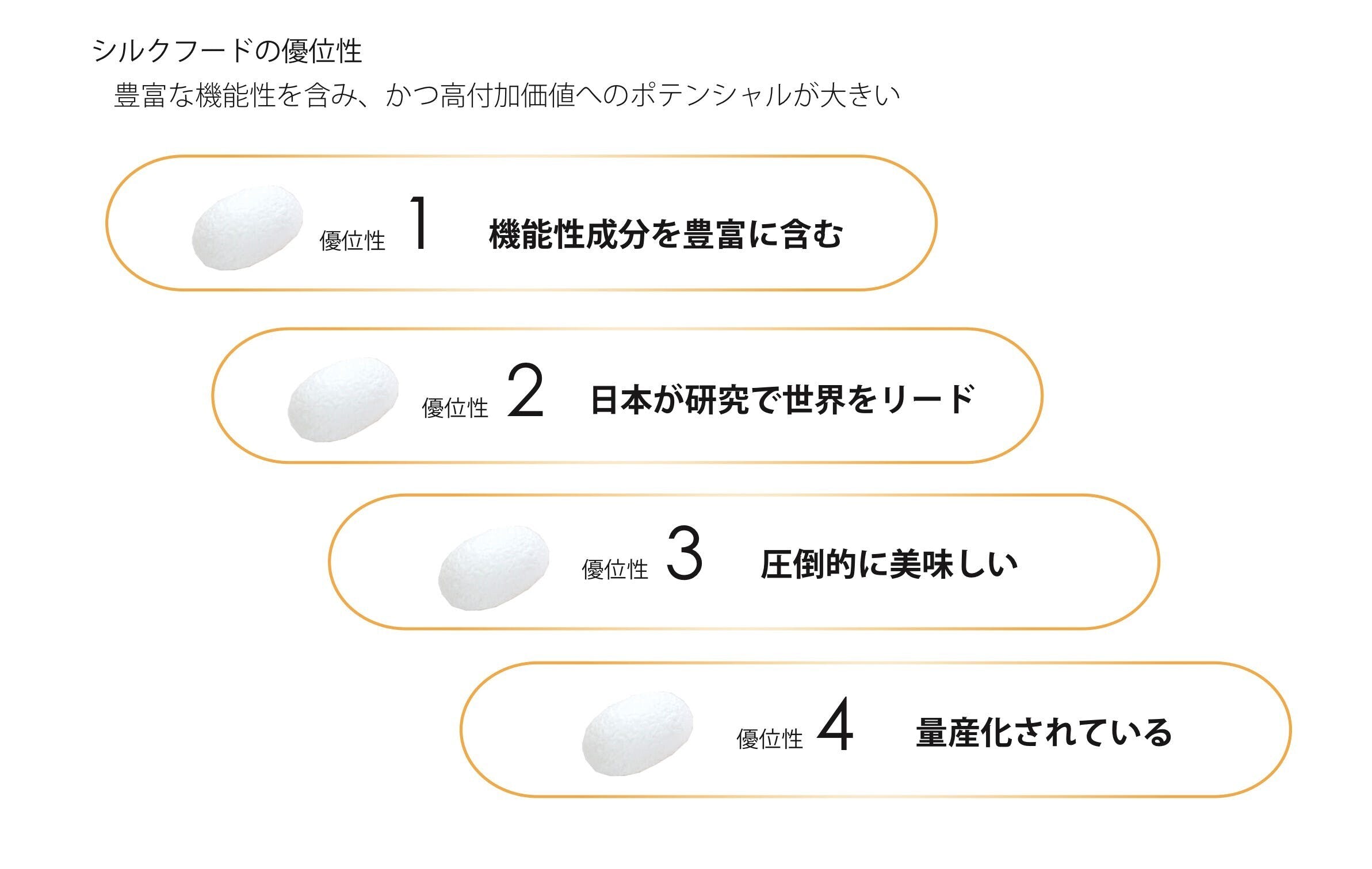 「最終的には原料メーカーとしてのビジネスも考えている。そのためにはまず全国の人に食べてもらって『シルクフードありだよね』『昆虫食ありだよね』と思ってもらうことが必要だ。そこで成果を出せれば、食料メーカーや飲食店にも関心を持ってもらい、シルクフードを広げていくことにも繋がる。まだまだ研究開発段階で、フードテックと言えるほど“テック”の部分を確立できている状態ではないが、数年かけてシルクフードをしっかりと世界へ普及させられるように事業を成長させていきたい」(梶栗氏)