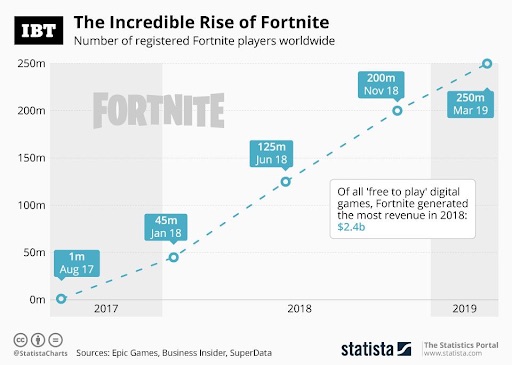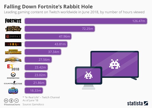 ここ数年の「eSportsブーム」により、リーグ・オブ・レジェンドやDota 2がなどもユーザーを増やしたが、驚異的なスピードでフォートナイトが抜いていった。