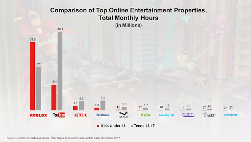 Robloxは13歳以下の子供たちに人気、YouTubeよりRobloxに時間をかけている。