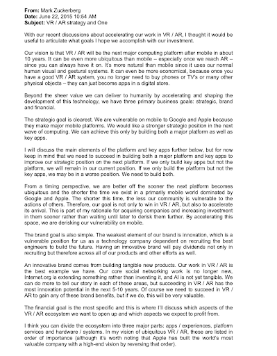 これを考えるとFacebookがUnityを買収したかった理由が明らかになる。ザッカーバーグ氏自身がメールで数千億円かけてもUnityの買収、UnityのOSを買うのは必要と書いていた。以下そのメールの一部だ。