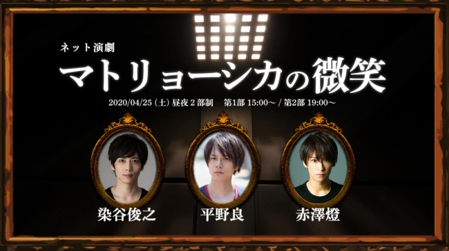 第一弾は舞台「マトリョーシカの微笑み〜刑事は二度死ぬ〜」を4月25日に配信済みで、朗読劇上演後は出演キャストの染谷俊之、平野 良、赤澤 燈の3氏がそれぞれのPCでファンからのコメントにこたえるかたちで、観客が楽屋に行くのに近い方向のファンサービスも実施した。