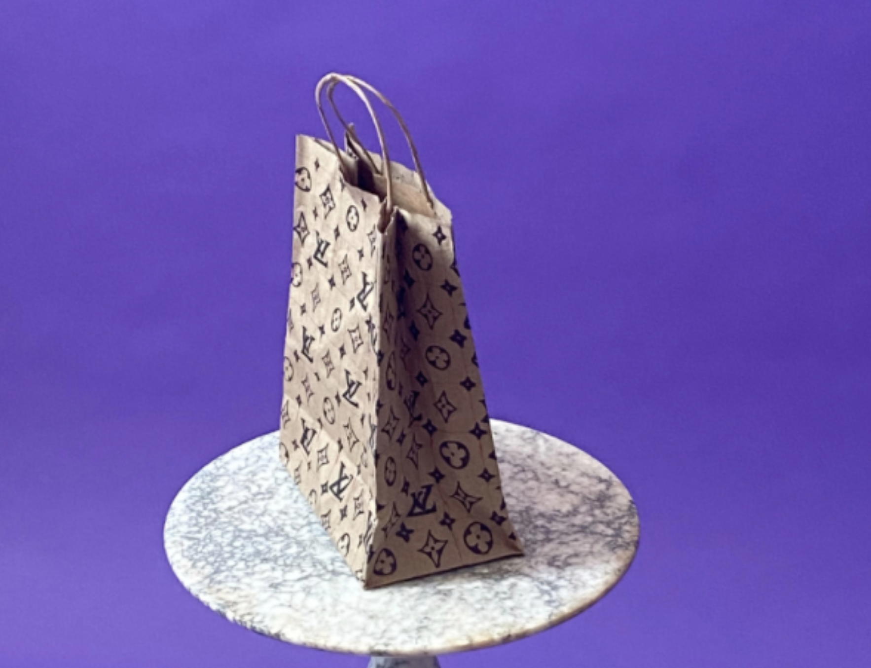 Articles of Interestの宣伝関連の準備をし始めた途端にCOVID-19問題が勃発したため、そのための写真撮影の予定が総崩れになってしまった。しかし、私の自宅のホールの向かい側に住む隣人が写真家であることを思い出した。我々はソーシャルディスタンスをとっての写真撮影をフィルムで行い、隣人の写真家Austin Hobart(オースティン・ホバート)氏は彼の風呂場で写真を現像したのである。結果とても美しい写真が出来上がったと思う。中でも私のお気に入りは、偽物ブランドについてのエピソードのために撮った写真で、紙バッグ一面にLouis Vuittonのロゴを私が描いたのを撮影したものだ。