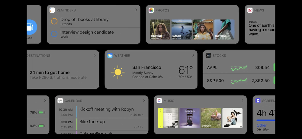 AndroidではおなじみのWidgets(ウィジェット)がiOSでようやく使えるようになった。具体的には天気予報やスケジュールなどの情報をホーム画面に固定配置できるようになり、わざわざアプリを開かなくても必要な情報をホーム画面上でチェックできる。