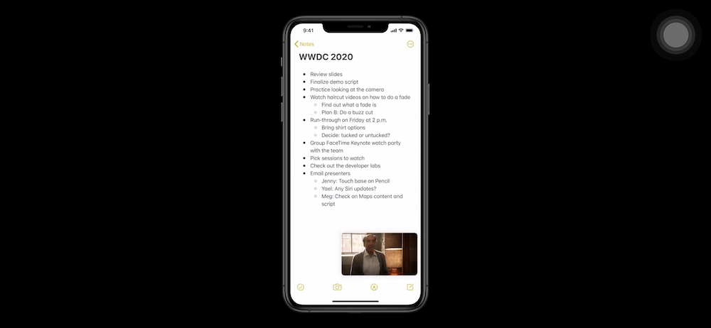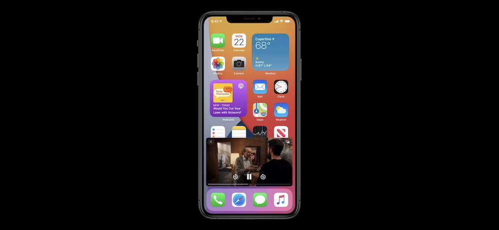 macOSなどのでおなじみのPicture in Picture(ピクチャー・イン・ピクチャー)機能がiPhoneに最適化された。再生中の動画を縮小表示してホーム画面や別のアプリ画面の上に重ねて表示できる。ドラッグで表示位置の変更や表示サイズの拡大・縮小が可能だ。画面の端に寄せて一時的に収納することもできる。