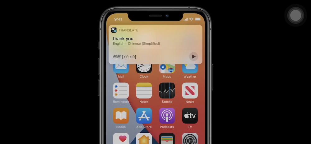 待望の翻訳機能も加わった。iOS14では、英語、北京語、フランス語、ドイツ語、スペイン語、イタリア語、日本語、韓国語、アラビア語、ポルトガル語、ロシア語の相互翻訳が可能になる。翻訳精度については現時点では不明だが、メッセージなどの短文のやり取りには威力を発揮しそうだ。