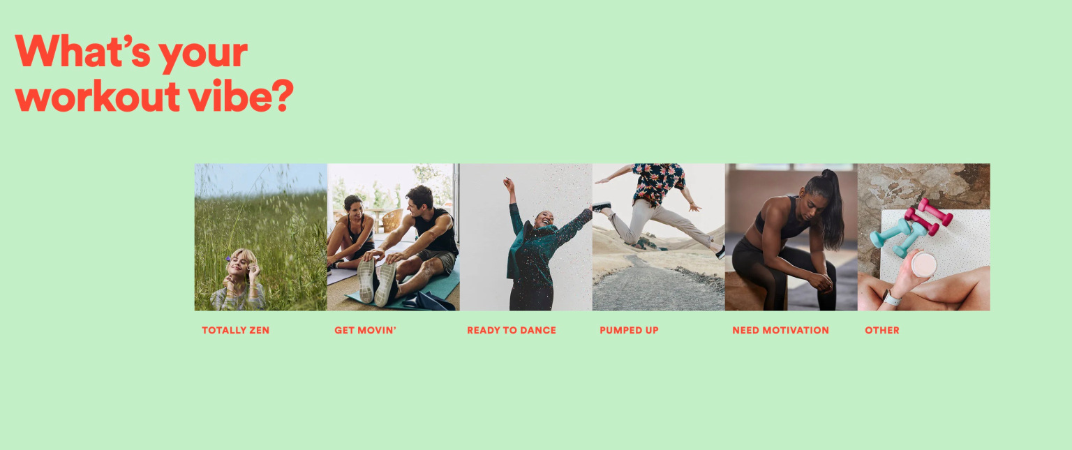 ただし、ユーザー自身ではなくSpotifyがプレイリストをカスタマイズ前に質問によって情報を収集する方法は、あまり多くは使われていない。ワークアウトの場合はユーザーそれぞれで大きく異なる可能性があるため、質問に答えてもらう必要がある。ヨガのセッションで集中するときに聴きたい曲やテンポと、トレッドミルでランニングをするときに聴きたい音楽は、たいていかなり違うものだ。