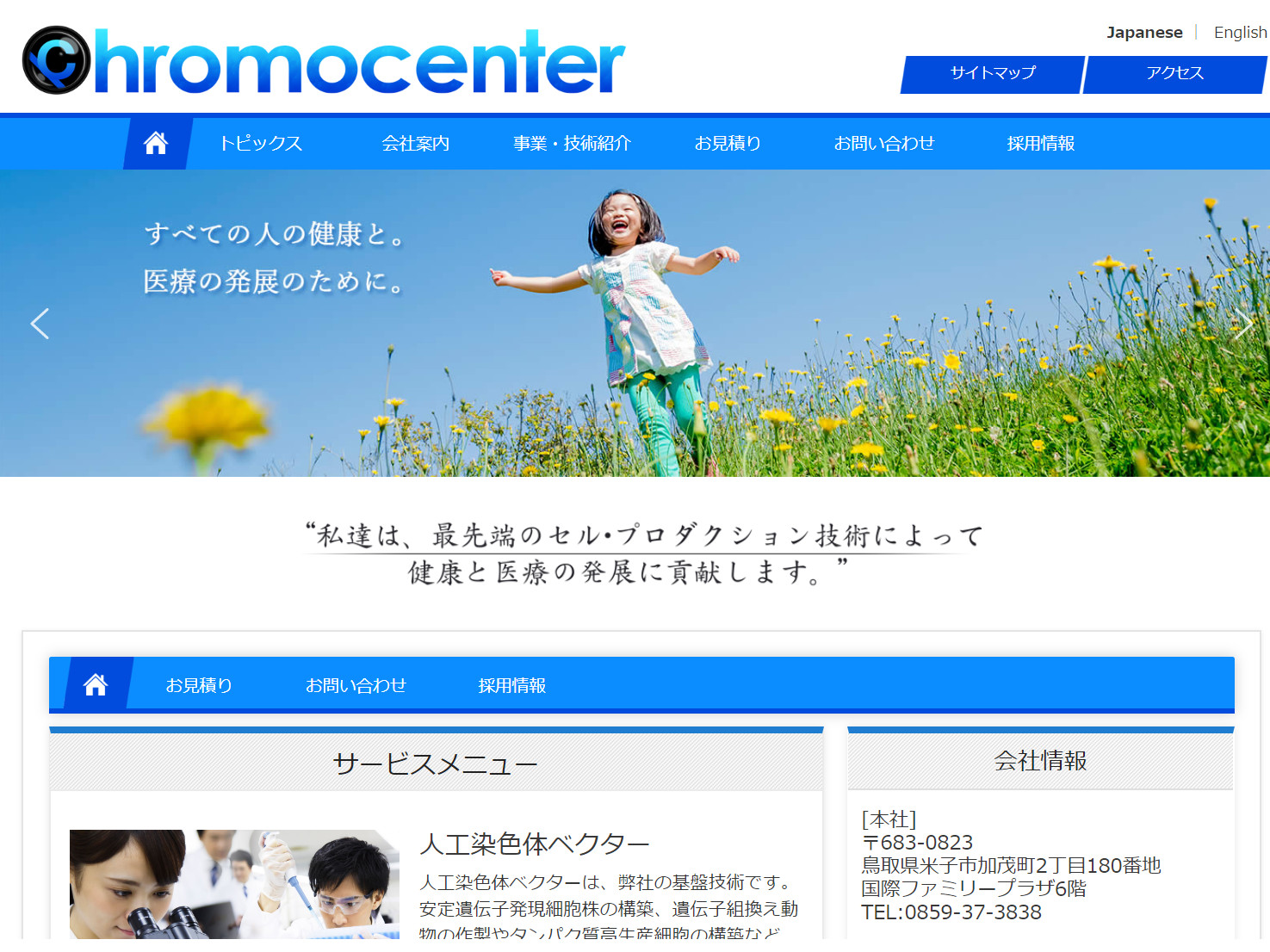 chromocenterは、「最先端のセル・プロダクション技術によって健康と医療の発展に貢献します」をミッションに掲げ、人工染色体ベクター技術、染色体解析(信頼性保証体制)サービス、オリジナルCHO細胞による物質生産技術をバイオ関連企業に提供するバイオテクノロジー関連スタートアップ。