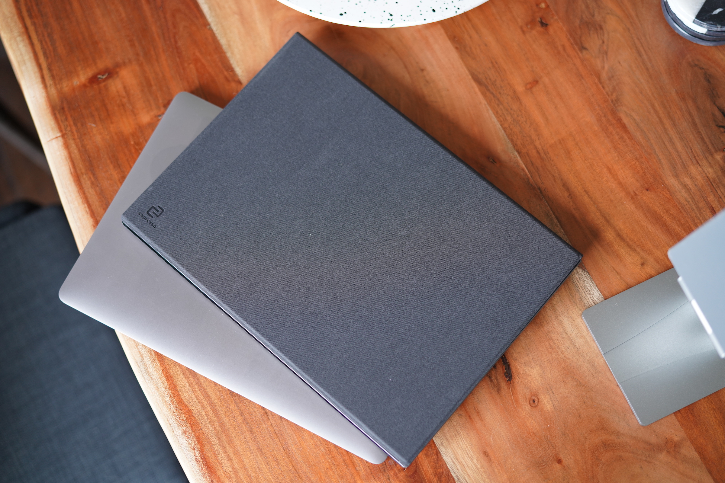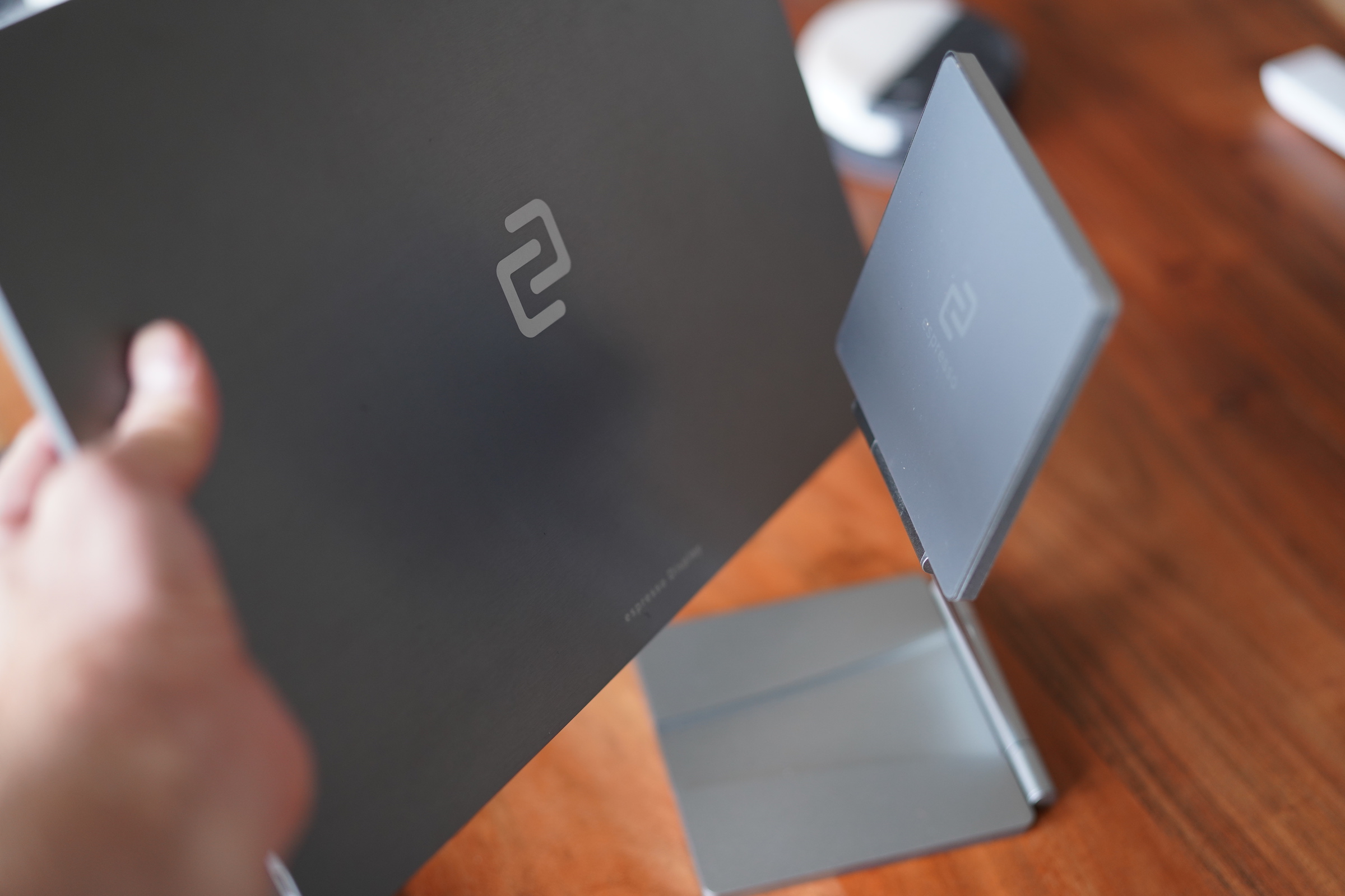 EspressoはフルHD解像度で、オプションの折り畳み式ディスプレイスタンドに固定する磁石を利用した独自の組み立てシステムを備える。従来のスタンドやマウンティングアームに取り付けるためのVESAマウントアダプターもある。運ぶときにディスプレイを保護するソフトケースも含まれている。