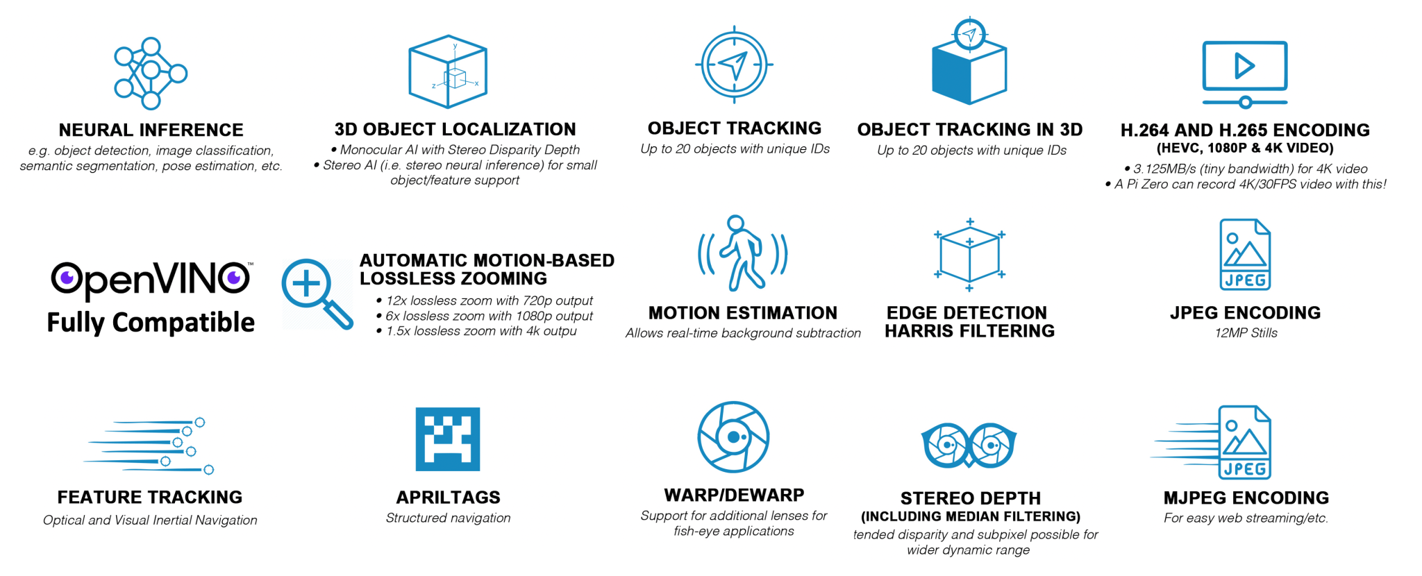 ハードウェアにも少し手を出すホビープログラマーが必ず使うというラズベリーパイのように、この手のデバイスを構成するほぼすべての要素は二次利用に関する制約がないMITのフリーライセンスに基づくオープンソース仕様である。さらにOAKは、コンピュータビジョンの世界で広く使用されている数多くのライブラリや標準を公開しているOpenCVと正式に提携している。