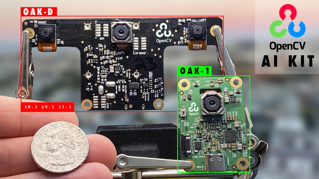 実はOAKには、超小型モデルの「OAK-1」とトリプルカメラモデルの「OAK-D」の2種類がある。共通しているコンポーネントが多いが、OAK-Dにはマルチカメラユニットが搭載されているため、プレーンなRGB画像の他のキューに頼らずにステレオの立体画像を実現できる。RGB画像のキューを認識する技術もかつてなく進歩しているが、それでも、ステレオで立体視できることは大きな長所である(ちなみに人間の視覚システムでは両方使われている)。