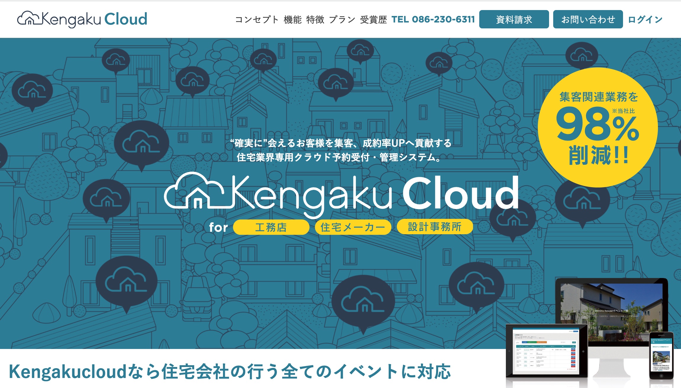住宅見学予約クラウドツール「KengakuCloud」(ケンガククラウド)を開発。工務店や住宅メーカー、設計事務所をターゲットにしたKengakuCloudは、岡山県倉敷市の総合住宅展示場「ハウジングモール倉敷」などに導入されている。「グループ連携機能」を使えば、複数社の予約制イベント情報を連携先ウェブサイトに自動収集し、予約を一括管理できる。新サービスの「KengakuCloud for オーナー邸見学」は、町中の空き家や居住中で売り出し中の一軒家を内覧するための予約管理システム。売り主や売却を担当する不動産会社に負担をかけずに仲介業各社が自由に内覧時間を調整できる。将来的には売り主と買い主を直接結んで物件内覧を可能するのが目標だ。