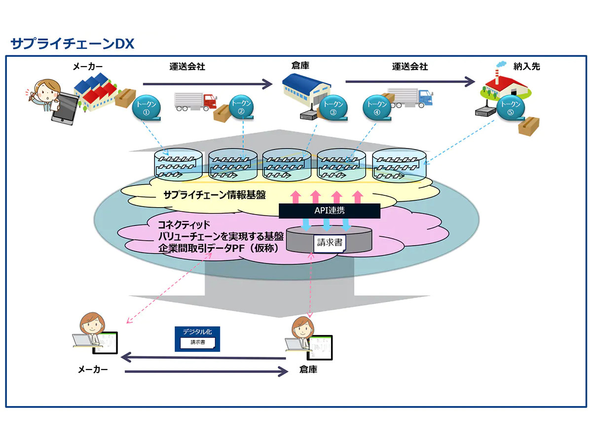 今回の合意は、2020年7月に三井物産(三井物産)および日本電信電話(NTT)とともに締結した、「ブロックチェーンおよびIoT技術等の活用によるサプライチェーンDXに関する共同実験協定書」に沿ったもの。商品や物の流れを管理する「サプライチェーン情報基盤」と、企業間取引をデジタル化する「コネクティッドバリューチェーンを実現する基盤」との連携を目指し、今秋から実証実験を行う。