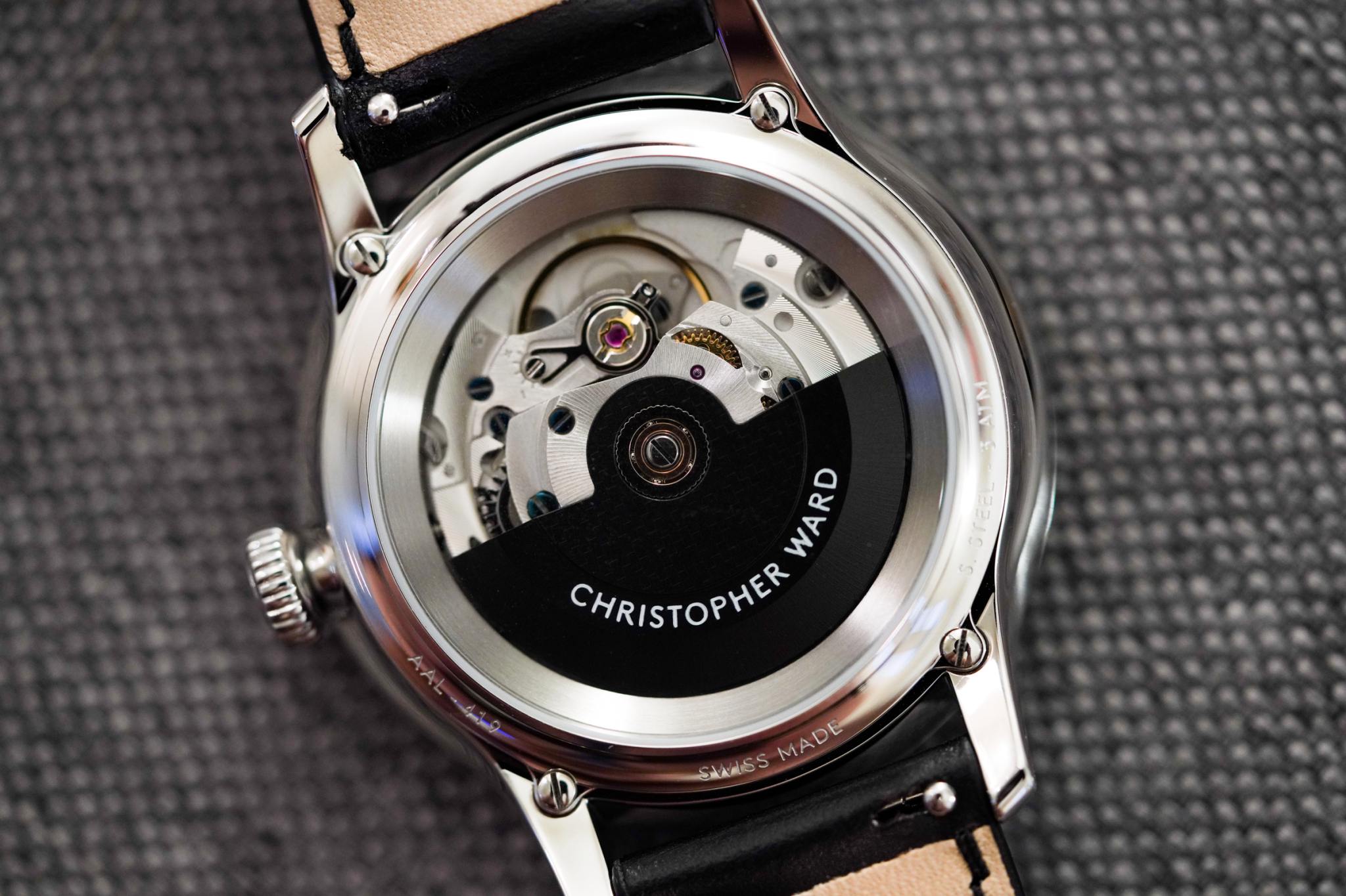 C1 Moonglowは、機械式時計ムーブメントメーカーとして信頼性の高いスイスのSelita(セリタ)製のSW220自動巻きムーブメントに併せて、自社製ムーンフェイズに改良を加えて搭載。英国を拠点とするChristopher Wardは、この複雑な機構を備える既製品とは異なり、C1 Moonglowでは単に1日に1回反転させるのではなく、ムーンフェイズ機能を継続的に作動させることを可能にした。同社によると、これにより月のグラフィックの詳細が時計の表面上を滑らかに移動し、最大128年の間、正確なフェイズ・トラッキングを提供することが可能になったのこと。