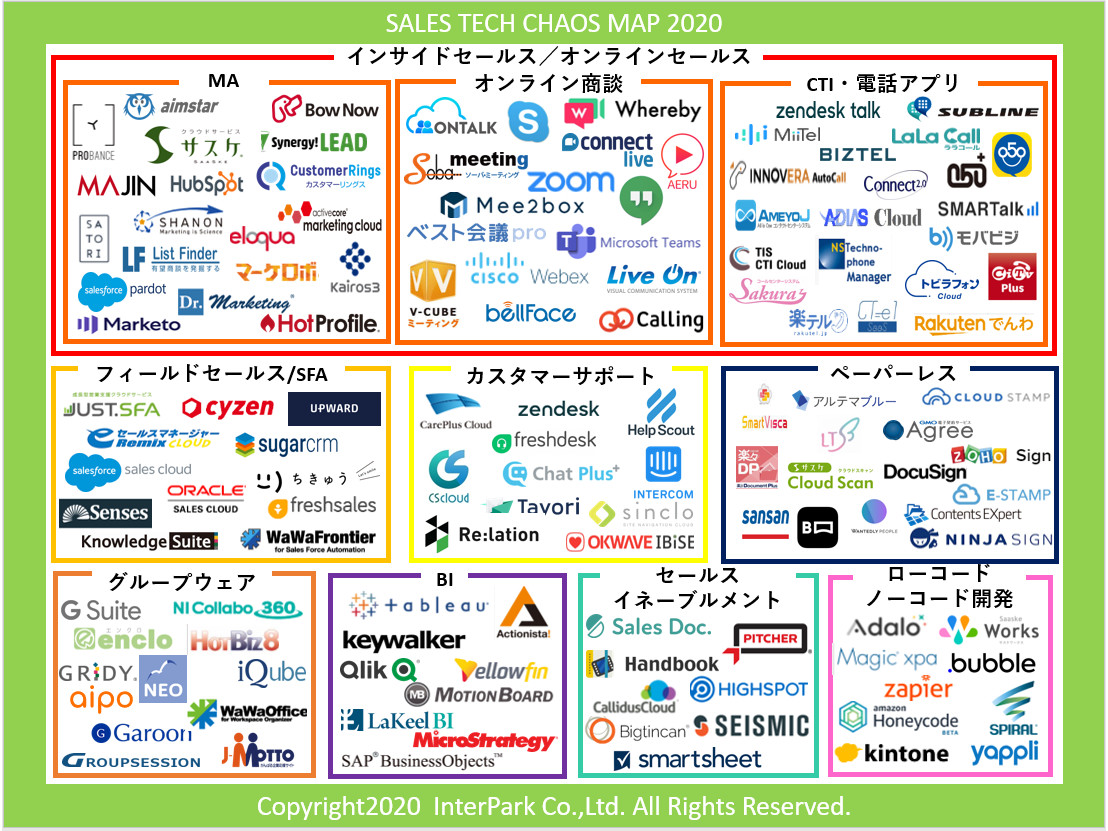 顧客管理クラウドのインターパークが営業活動を効率化する「Sales Tech」のカオスマップ2020を公開
