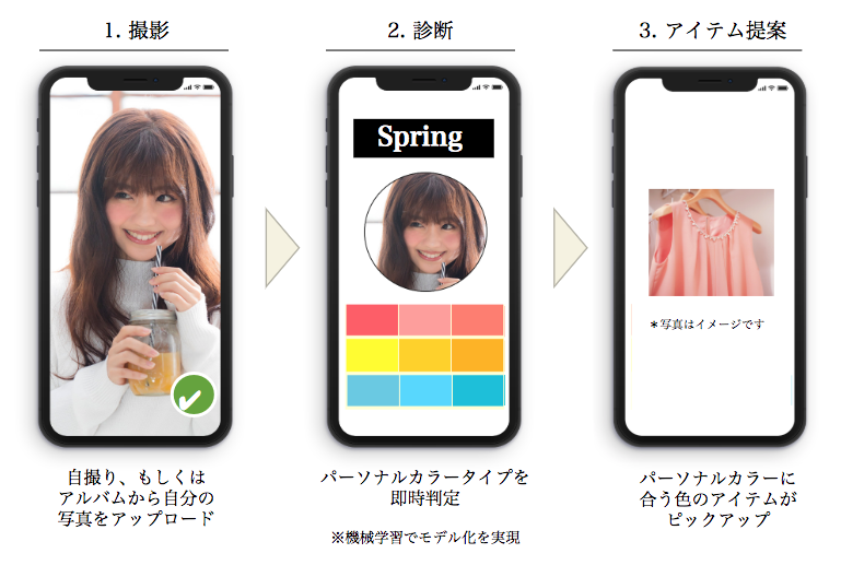 その1つが、2018年にデジタルガレージと共同開発したAIを活用したオンラインパーソナルカラー診断サービスのirofit だ。ユーザーの顔写真1枚からカラータイプを瞬時に判定するという機能が評価できるというもの。