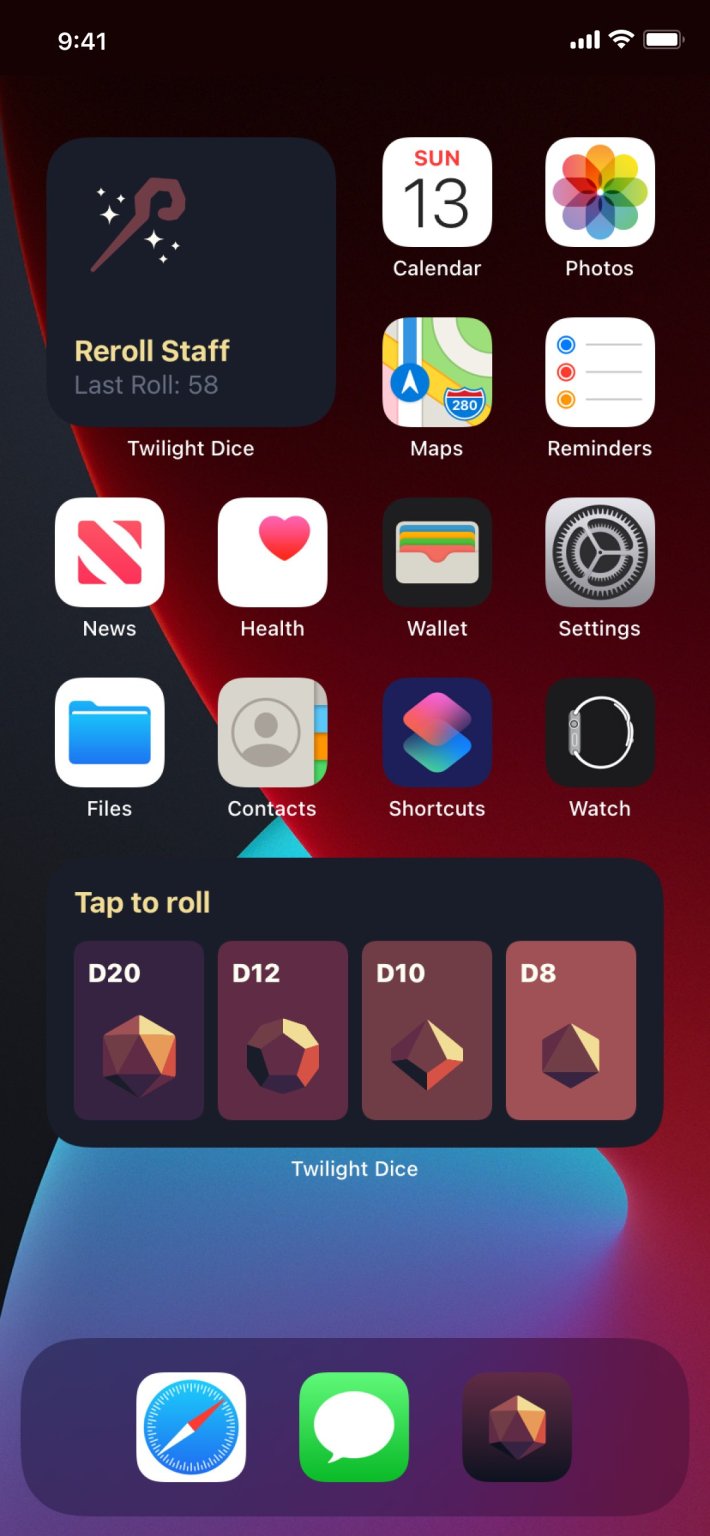 もう1つのサイコロアプリのTwilight Diceも、本日からそのウィジェットが使える。
