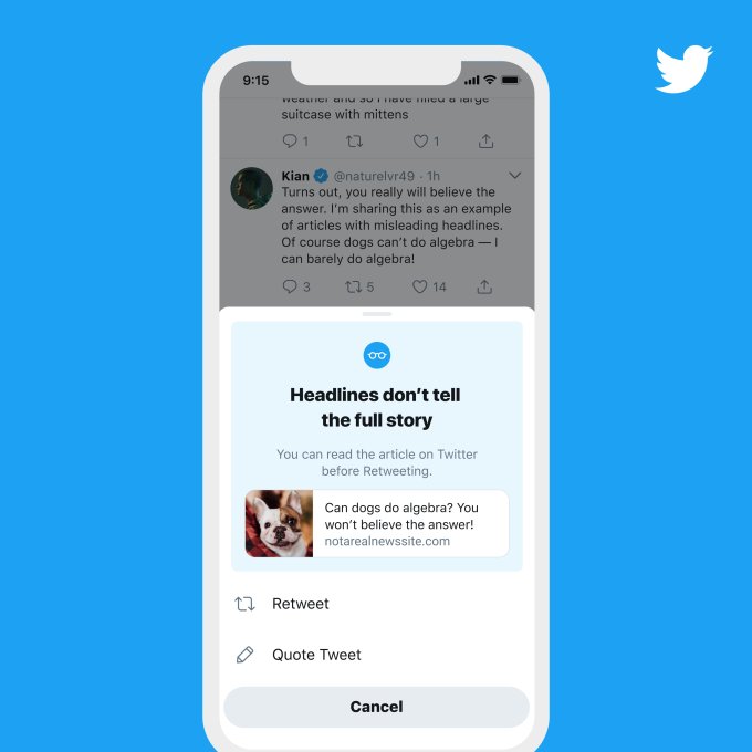 Twitterが「リツイートの前に読め」プロンプトを全ユーザーに適用、脊髄反射リツイート防止へ