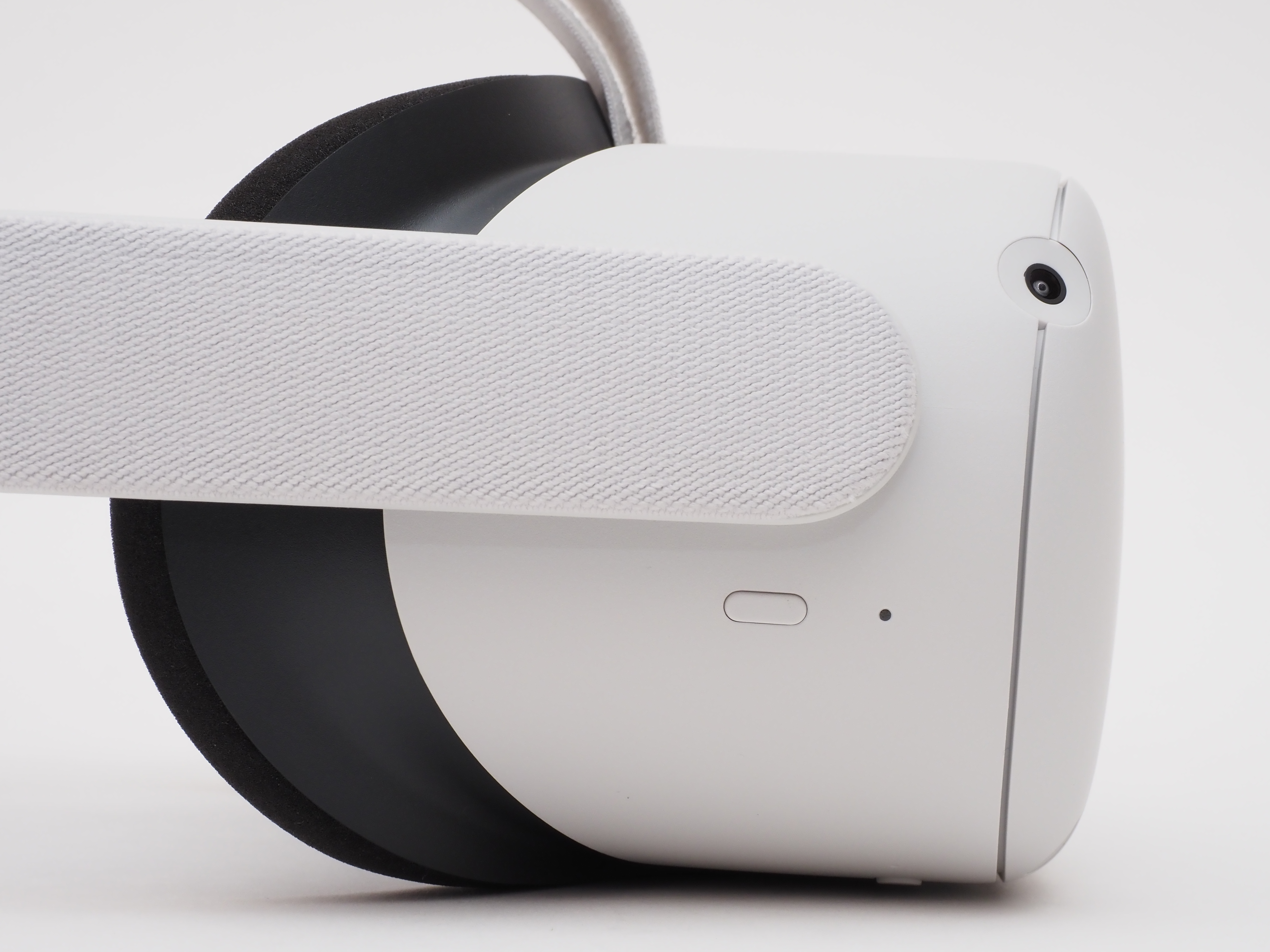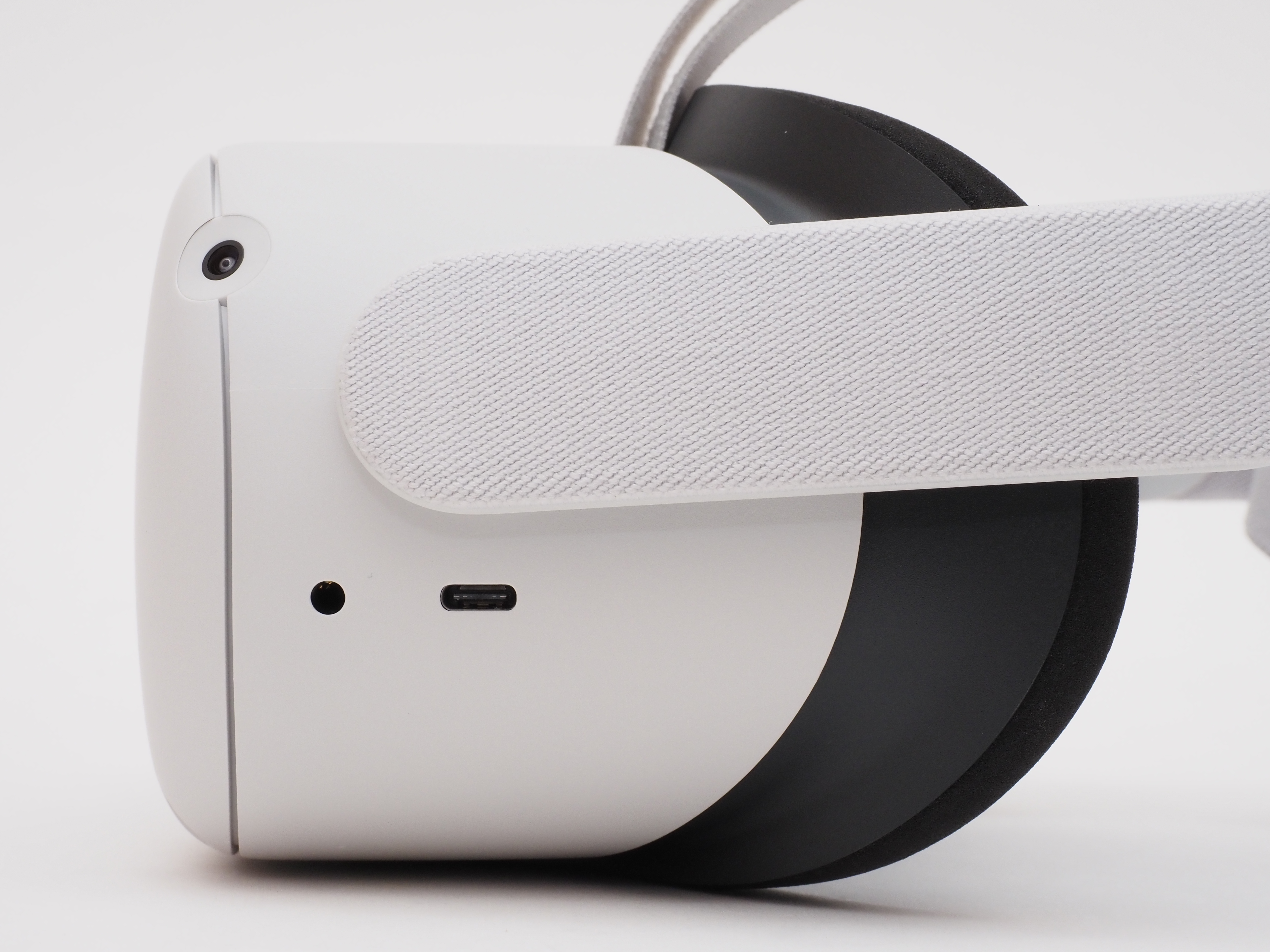 左側面には3.5mmイヤフォン端子とUSB-C端子を用意。Oculus Questは左右にイヤフォン端子が装備され、ケーブルが短い左用、右用のイヤフォンを装着できたが、Oculus Quest 2は右側のイヤフォン端子が廃止された