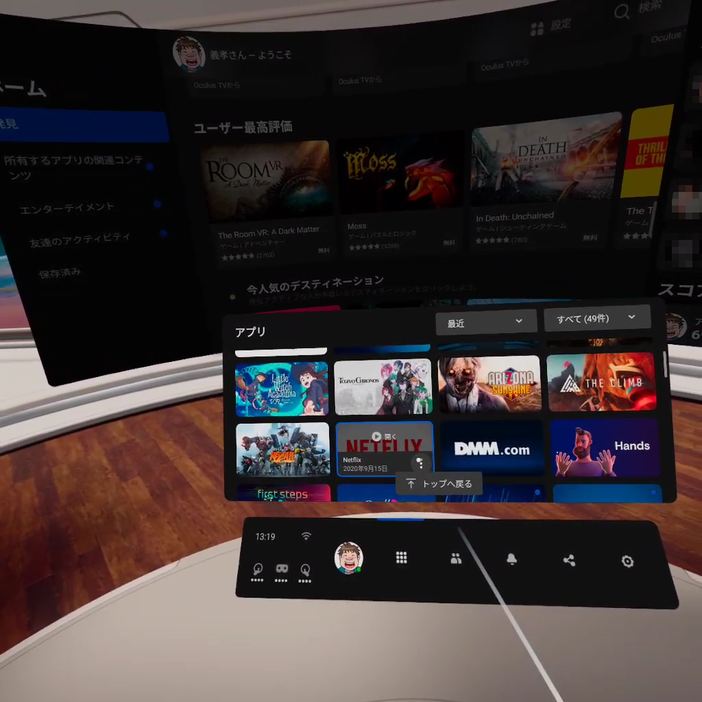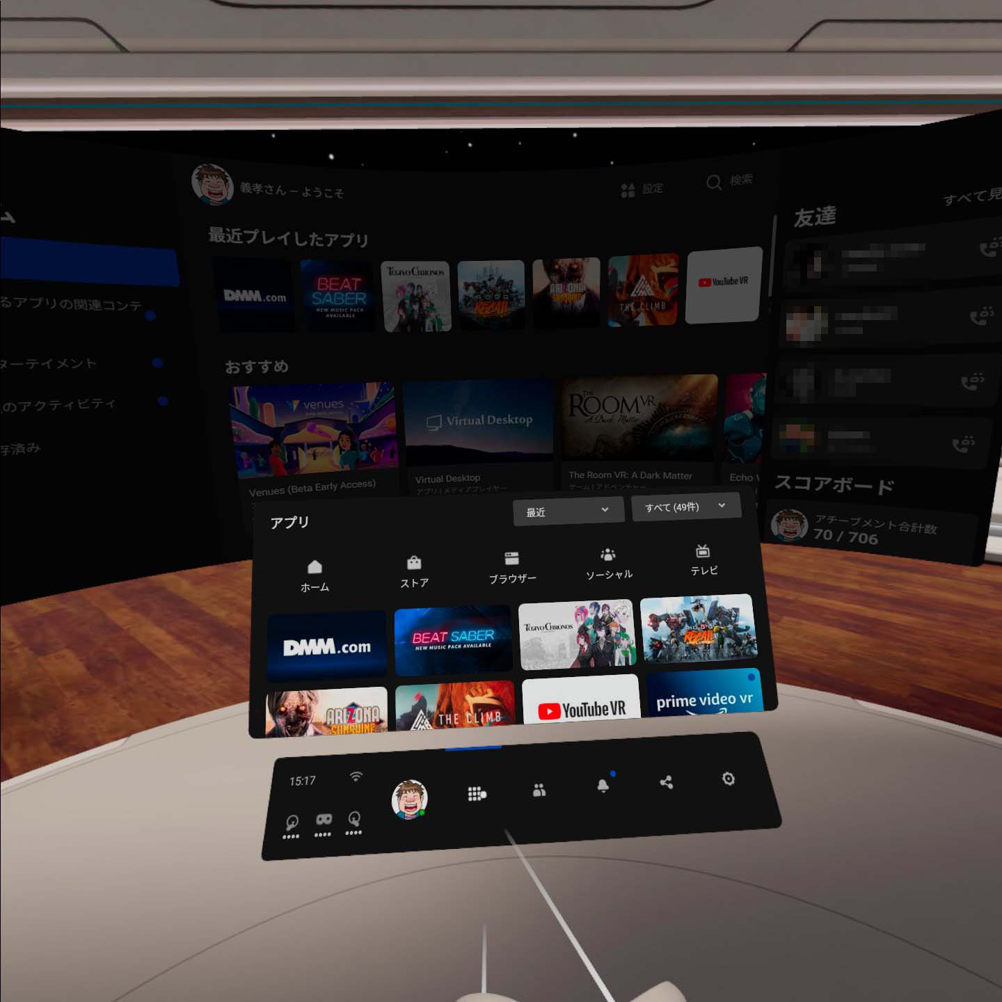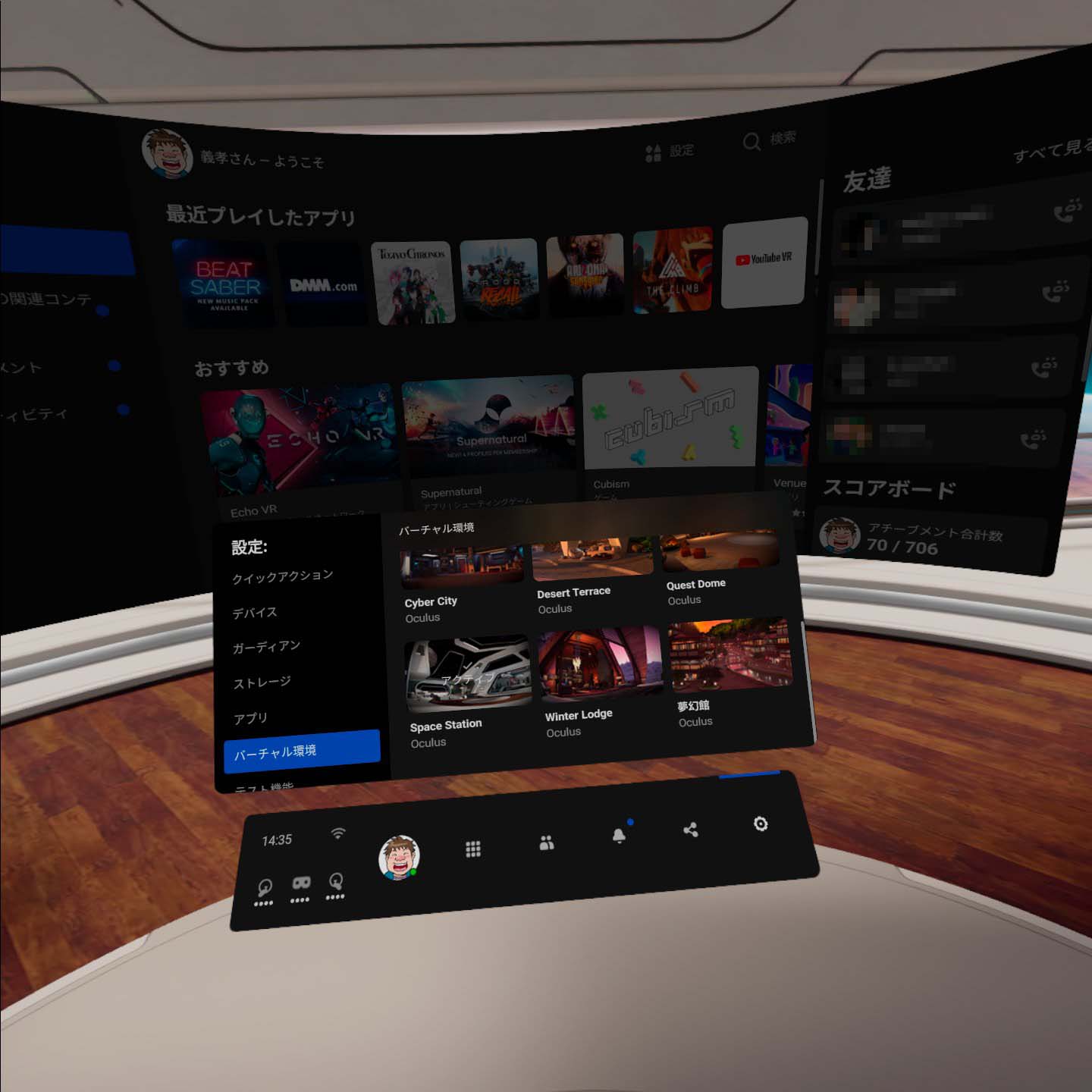 Oculus Quest 2のホーム画面。構成や機能はOculus Questと基本的に同じだ
