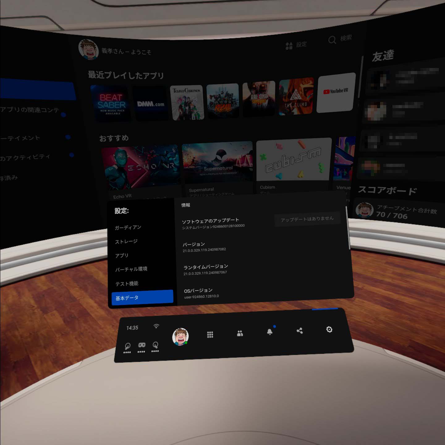 ただし、両者のソフトウェアのバージョン、ランタイムバージョン、OSバージョンが異なるので、Oculus Questに新しいソフトウェアが提供されたときに、未収録のバーチャル環境が追加される可能性がある