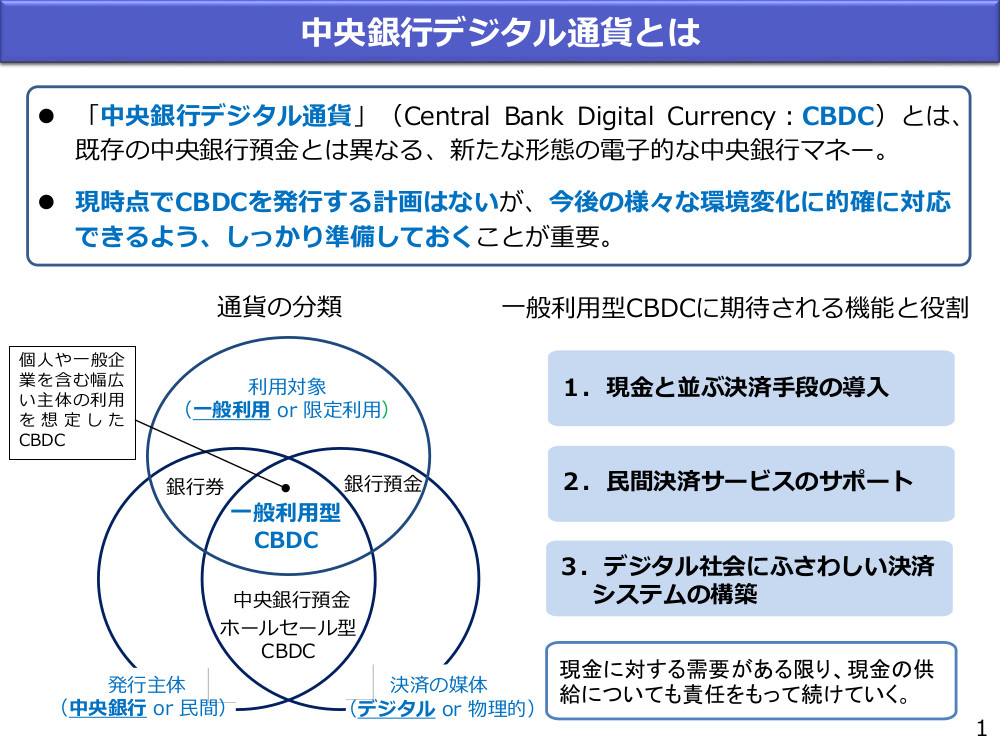 日本にはそのような事情は存在しないため、日銀は、現時点でCBDCを発行する計画はないと明言。