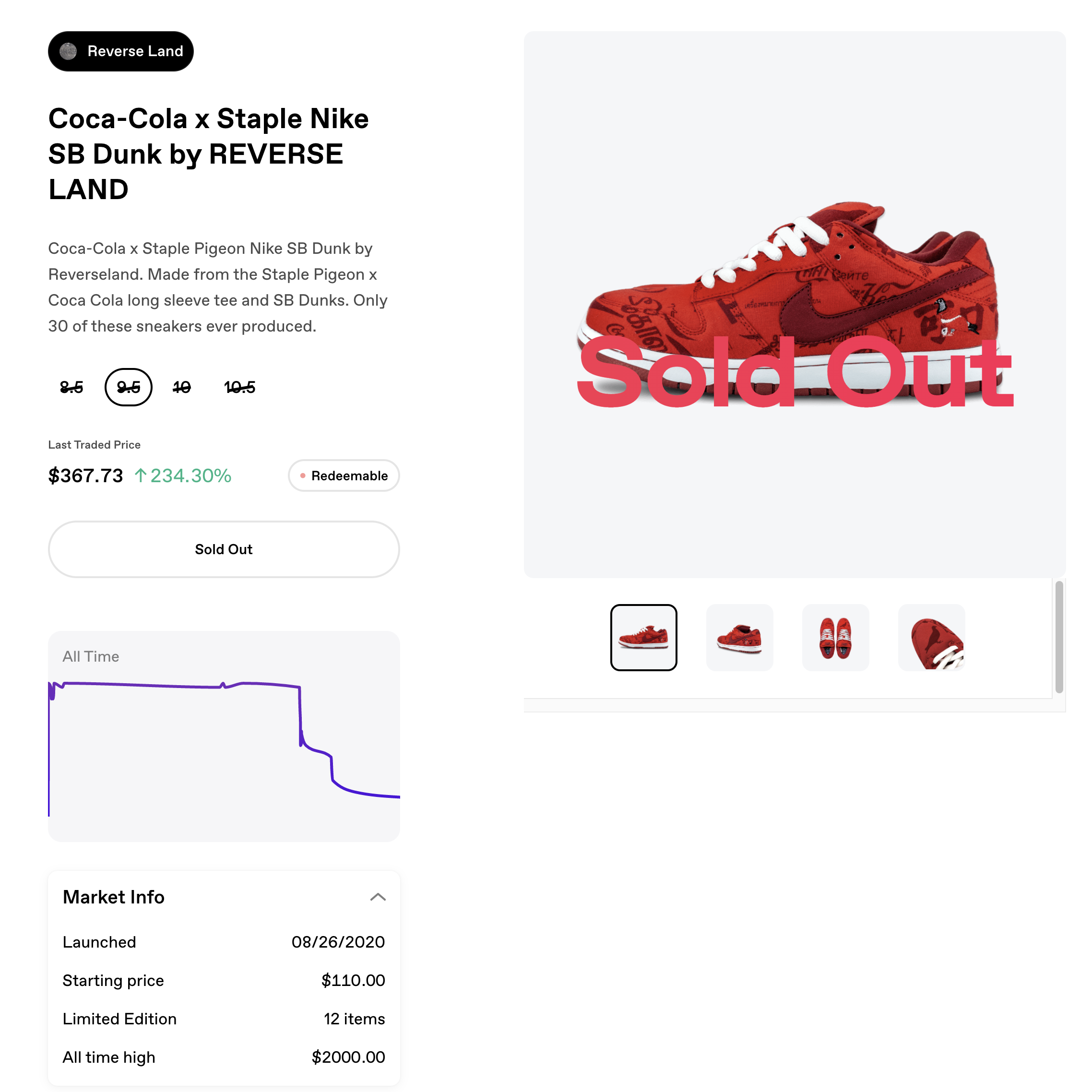 さっそく成功をおさめた取引もある。デザイナーでありマーケターでもあるステイプル氏は、Reverseland(リバースランド)によるCoca-Cola(コカ・コーラ)とStaple(ステイプル)のコラボ作品であるスニーカーSB Dunk(SBダンク)を30足限定で売り出しており、価値は発売以来234%上昇している。Benji Taylor(ベンジ・テイラー)氏とKevin Doan(ケビン・ドーン)氏のコラボによるソフビフィギュアは210%の上昇を見せている。
