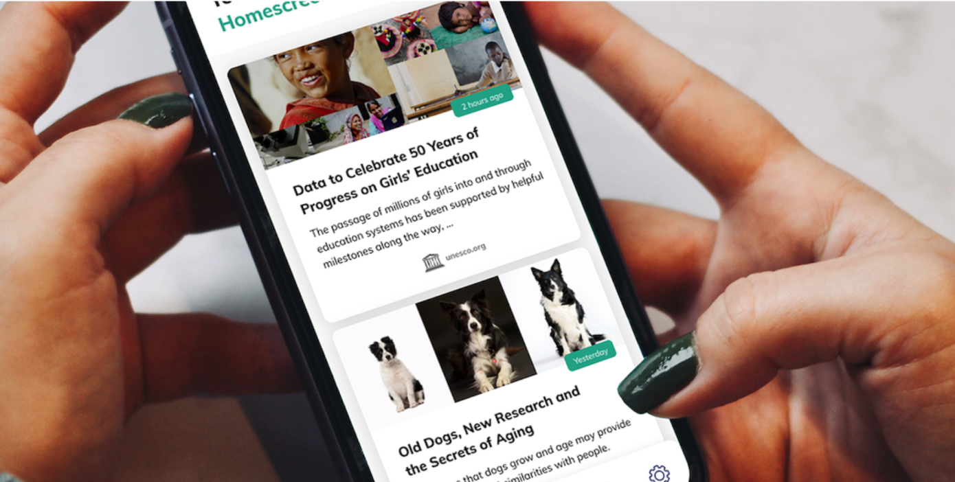 これは、ユーザーがパーソナライゼーションアルゴリズムを適切に調整できる、Tinder(ティンダー)スタイルの右スワイプ(または左スワイプ)の仕組みによって実装されている。ホーム画面にニュースコンテンツ(国別にローカライズされる)を表示することはもちろんのこと、検索結果ページも表示できる。