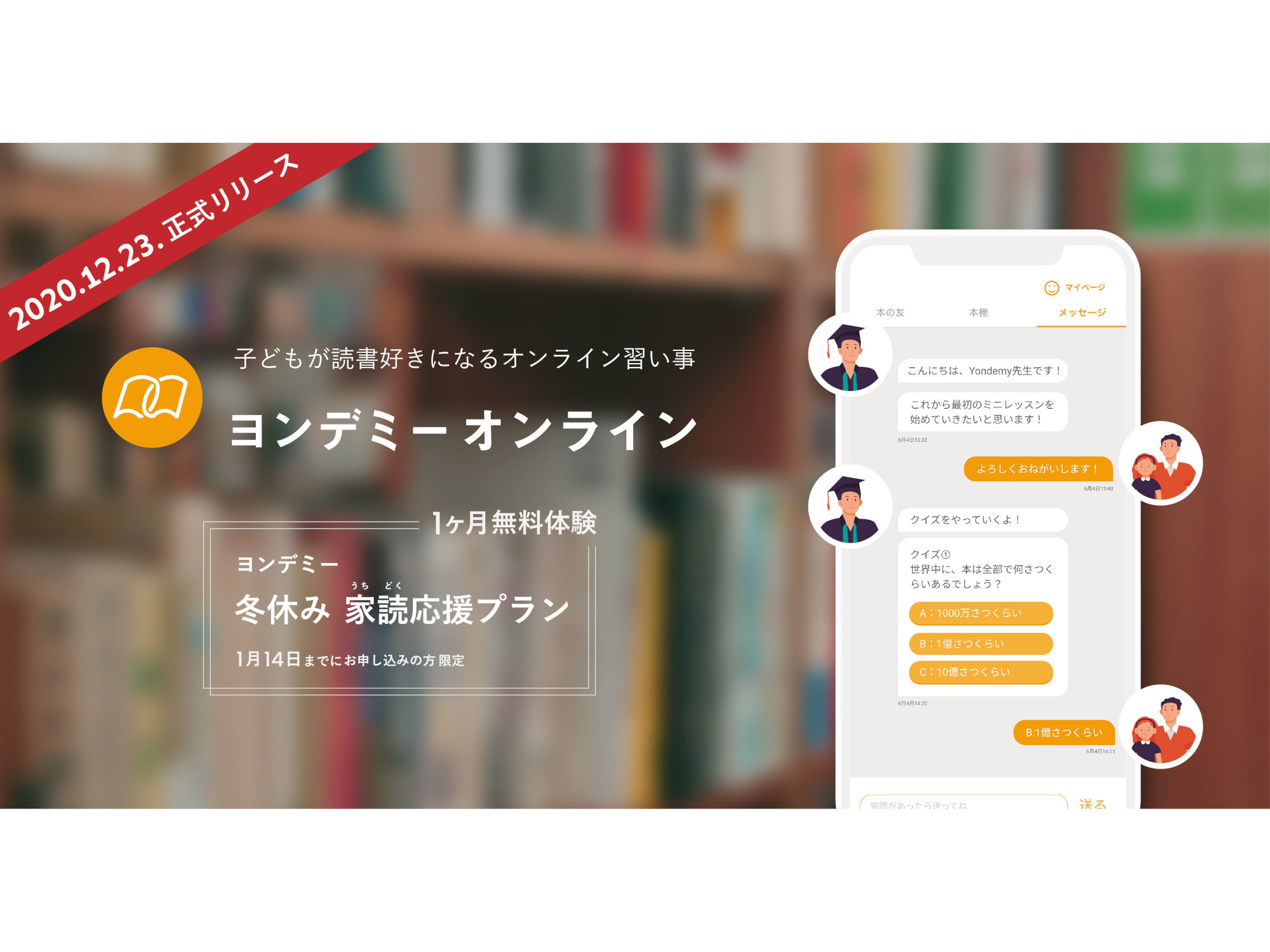 ヨンデミーオンラインは、5~14歳の児童を対象に、完全オンライン読書教育を行う習い事サービス。料金は月額定額制で、税抜2980円。