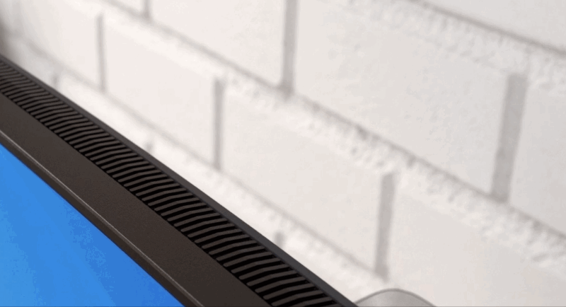 画面の下には、感じのいいフェルトで覆われたスピーカーバーがある。出力は、激しい音楽には向かないが、ビデオ通話の音声をクリアに聞くには十分だ。