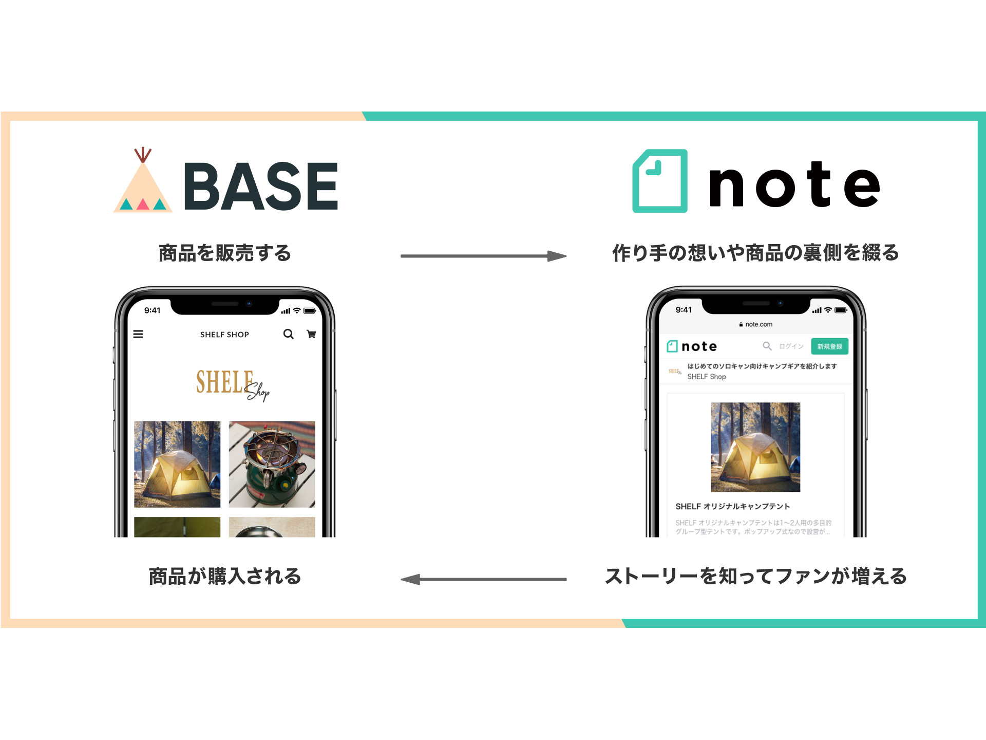 まずは、noteを活用し商品・ブランドの背景にあるストーリーや作り手の思いを発信し、発信した情報に共感したファンが「BASE」で開設されたネットショップで商品を購入する流れをスムーズにする機能開発を共同で進めていく。