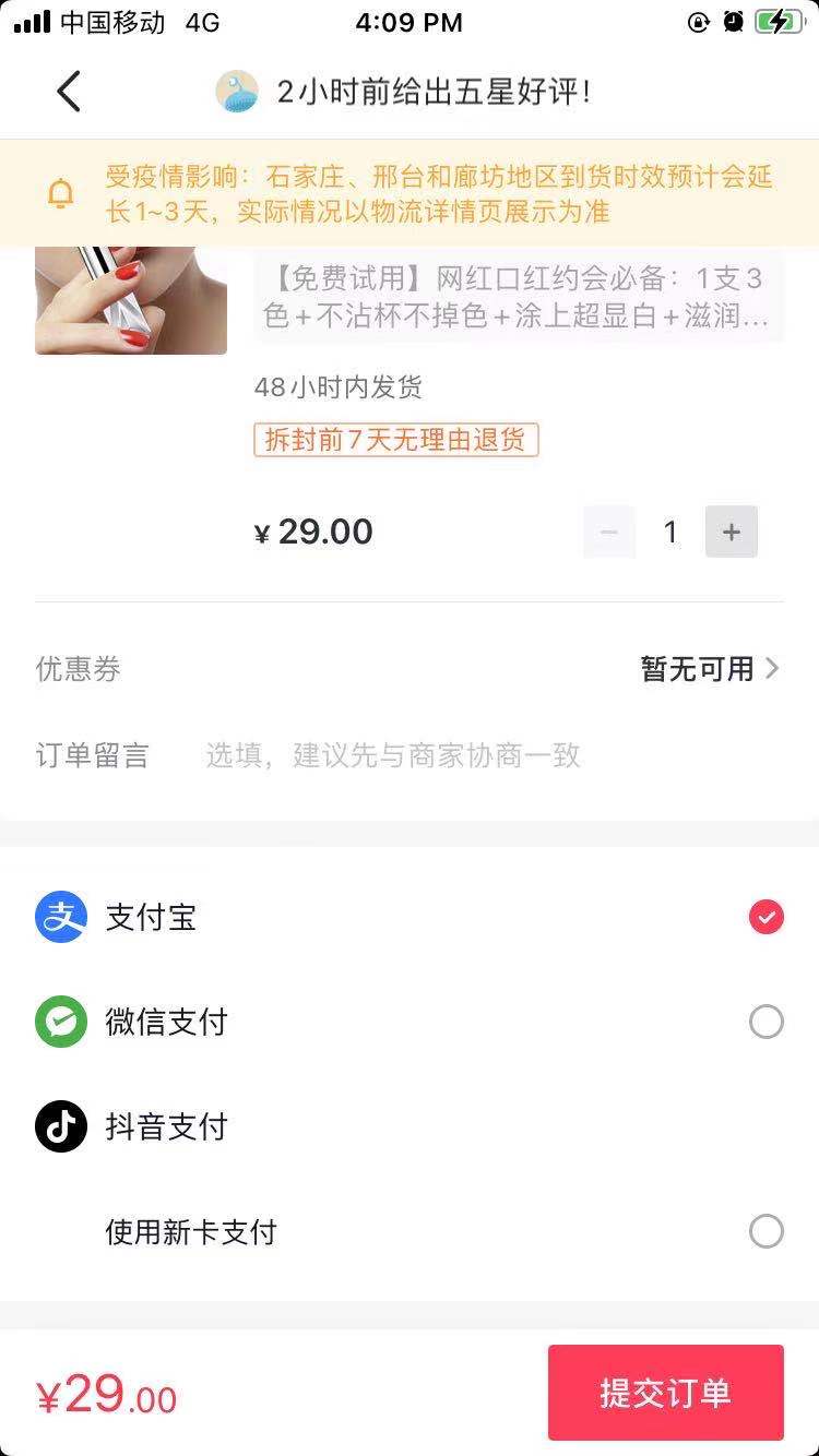 DouyinではこれまでAlipayとWeChat Payで支払いができたが、ここにDouyin Payが加わった。