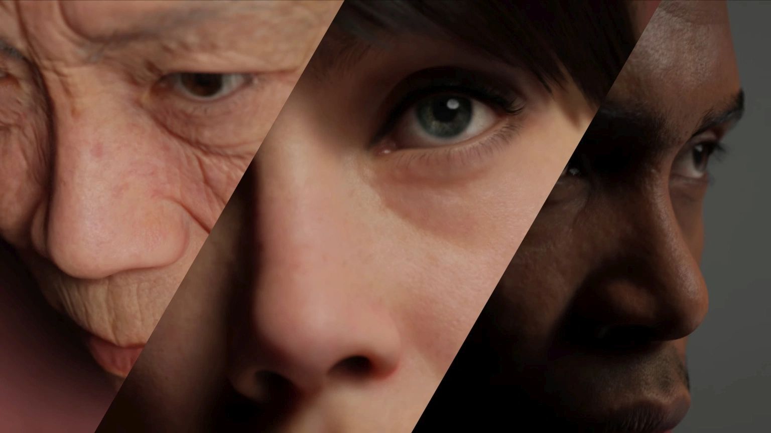 Metahumanと「Cyberpunk 2077(サイバーパンク2077)」のようなコンシューマー向けゲームで利用されているクリエイターツールとの違いは精細度と柔軟性にある。動画を見ればわかるが髪、肌、目、歯などのクオリティが圧倒的に高い。年配のアジア系男性が顔を動かすと顔のしわが変形し影ができる。肌への光の効果も中央の女性と左の男性ではまったく違う。