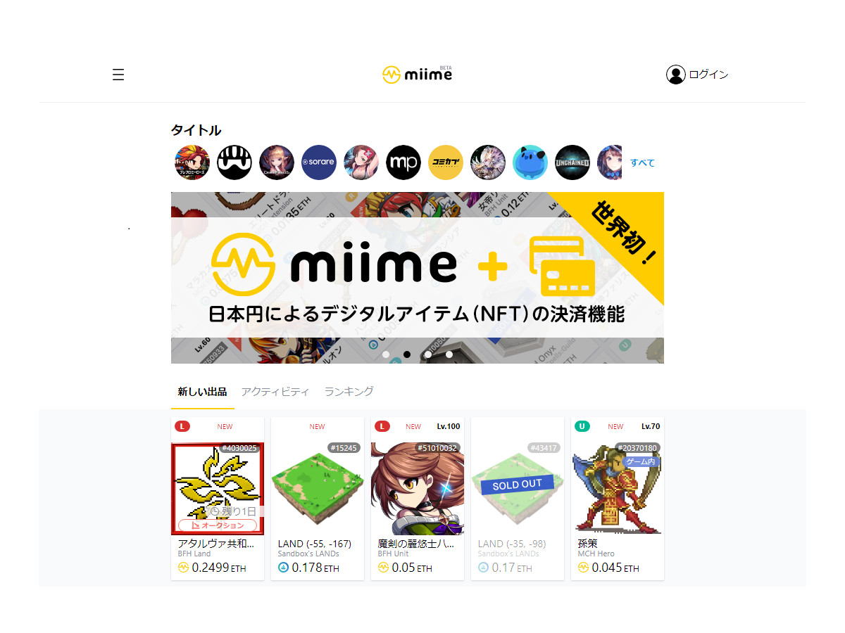 miimeは、NFTとして発行されたデジタルアイテムに関し、ユーザー間で売買できる場を提供するマーケットプレイスサービス。ウェブ上のブロックチェーンアプリケーションとして動作する。miimeでは、デジタルアイテムの売買成立と同時に、ブロックチェーン上のスマートコントラクトによって所有権の移転が実行される。