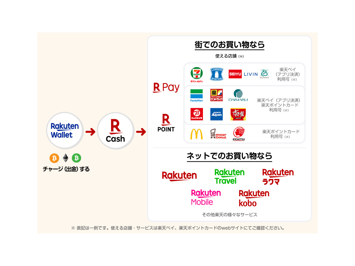 ビットコイン・イーサリアムを「楽天キャッシュ」にチャージ(出金)し、楽天ペイや楽天ポイントカードで利用可能に