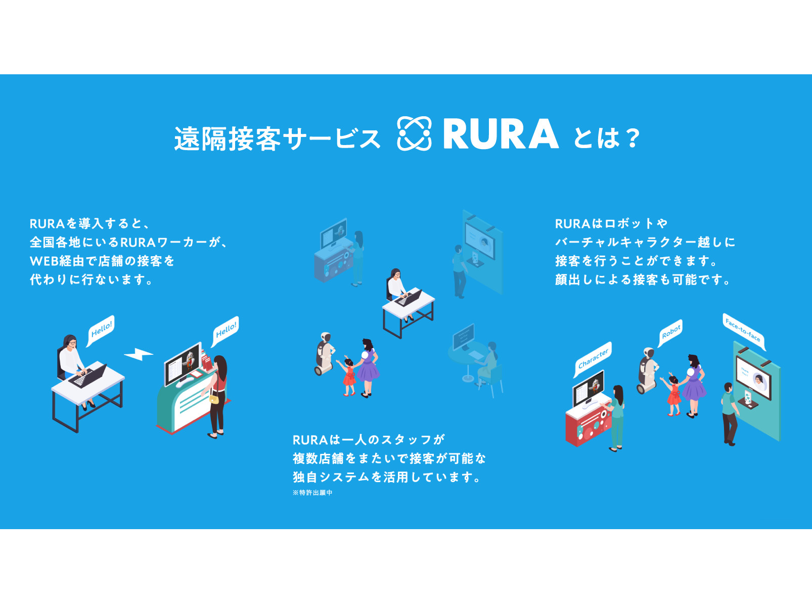 RURAでは、全国各地にいる「RURAワーカー」が、店舗にいる顧客に対して遠隔地からインターネットごしに接客を行う。また顔出しでの接客も可能なほか、バーチャルキャラクターを表示させることもできる(バーチャルキャラクターはあくまで画面表示用で、応対自体は人間が行う)。