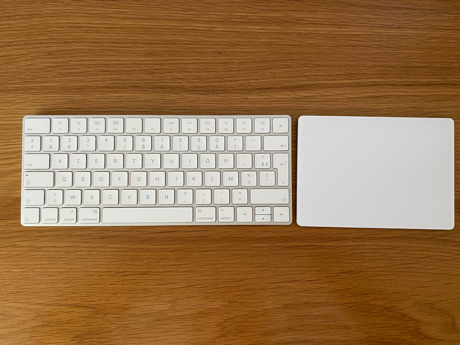 こちらが私の退屈なAppleキーボード。フランス語バージョンなのでQWERTYキーボードだけの人生を送ってきた人には少々奇妙に見えるだろう。しっかり働き、信頼性も高く、何時間でもタイプしていられる。何よりも重要なのは、存在が気にならず書くことに専念できることだ。