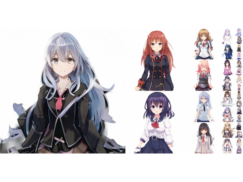 Crypkoは深層学習を利用し、制作者が定義した顔のパーツ、表情、髪の色などに合ったキャラクターのCG(立ち絵)を自動生成可能。これまでCrypkoは顔を生成対象としていたが、より高い解像度で上半身まで生成可能となった。