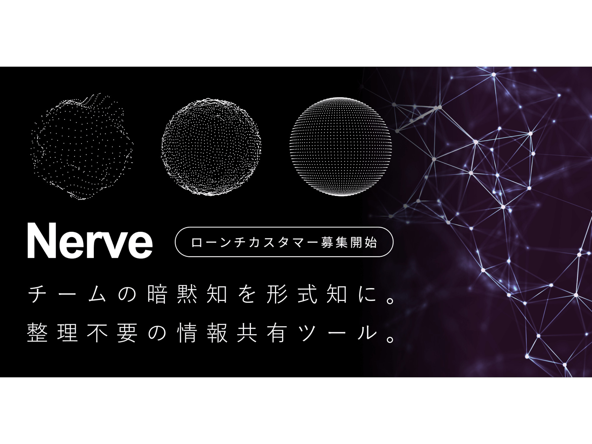 Nerveは、業種・職種を問わず活用できる、クラウドベースの社内向け情報共有ツール。誰でも・いつでも・どこでもノートを書いて共有でき、蓄積された情報はAIが自動で整理するため、整理整頓の手間もなく必要な時にすぐに見つけられるという。