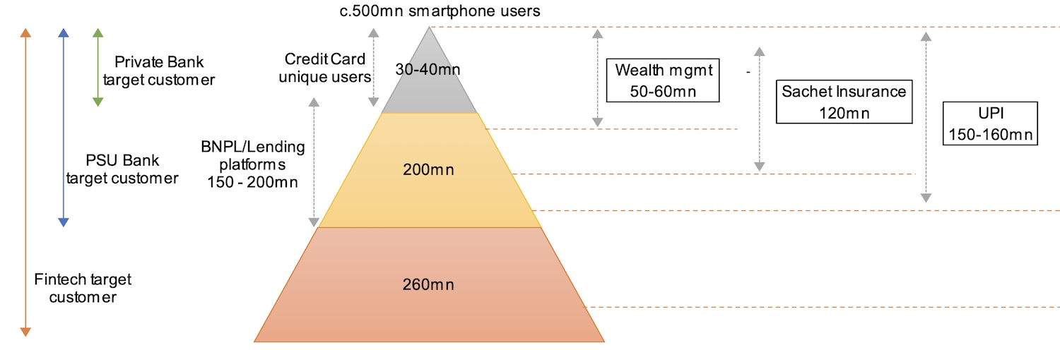 インドのフィンテック企業にとっての消費者セグメンテーションと獲得可能な最大市場規模(BofA Research)