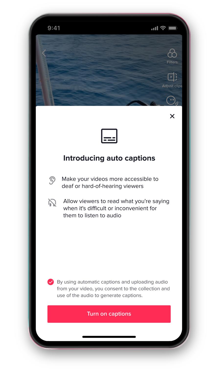 自動キャプションを使うには、クリエイターは動画をアップロードあるいは撮影した後に編集ページでオプションを選択する。すると、動画が公開される前に間違いを修正するために生成されるテキストを編集することができる。