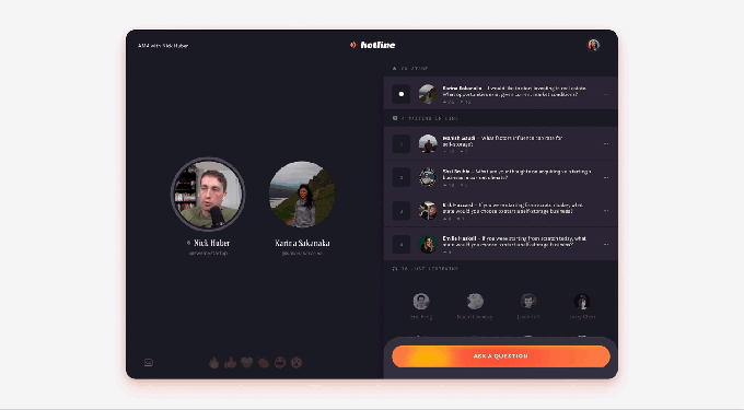 「Hotlineでは、専門家が自分で事業を構築してきたときと同様に、人々が専門家からプロのスキルなどの知識を学べるよう、インタラクティブなライブのマルチメディアQ&Aをどう役立てたらよいかを見極めたいと思っています」と広報担当者はいう。「New Product Experimentation(NPE、新製品実験)では、CatchUp、Venue、Collab、BARSといったマルチメディア製品をテストしてきましたが、これらのフォーマットが今後も人と人をつなぎ、コミュニティを構築する一助になれることを知り、勇気づけられました」。